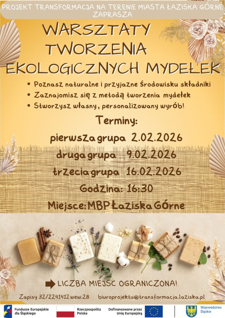 Podczas warsztatów:– poznasz naturalne i przyjazne środowisku składniki– zapoznasz się z metodą tworzenia ekologicznych mydełek– stworzysz własny, spersonalizowany wyrób i zabierzesz ze sobą do domu Terminy spotkań:pierwsza grupa – 9 marca 2026druga grupa – 16 marca 2026trzecia grupa – 23…